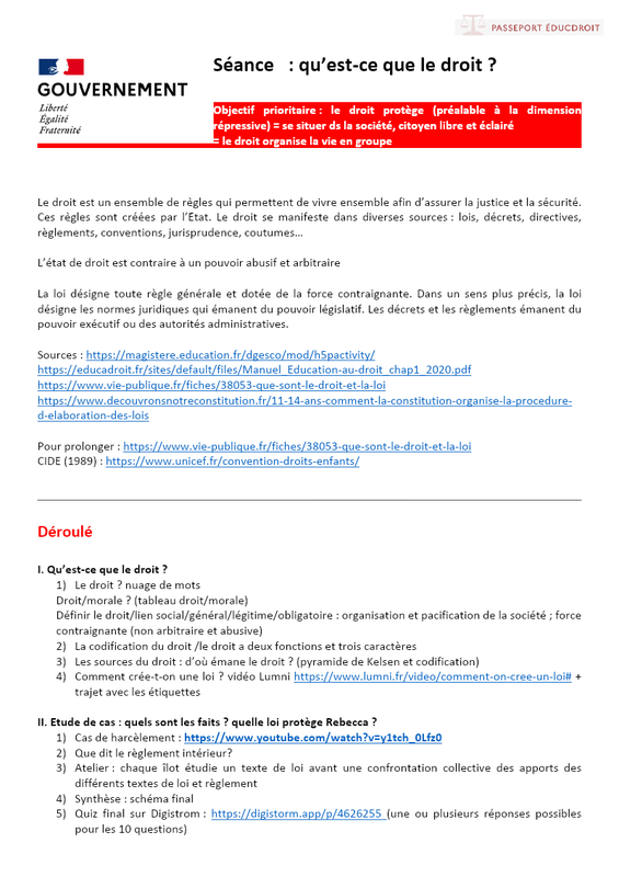 Pour préparer les élèves Passeport Education au droit