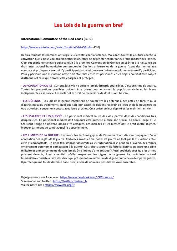 Les Lois De La Guerre En Bref