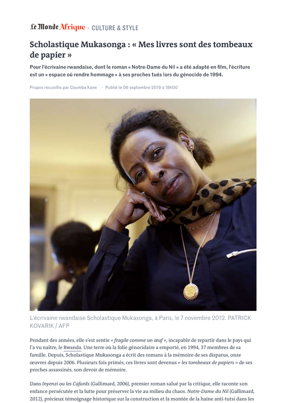 Scholastique Mukasonga : « Mes Livres Sont Des Tombeaux De Papier »